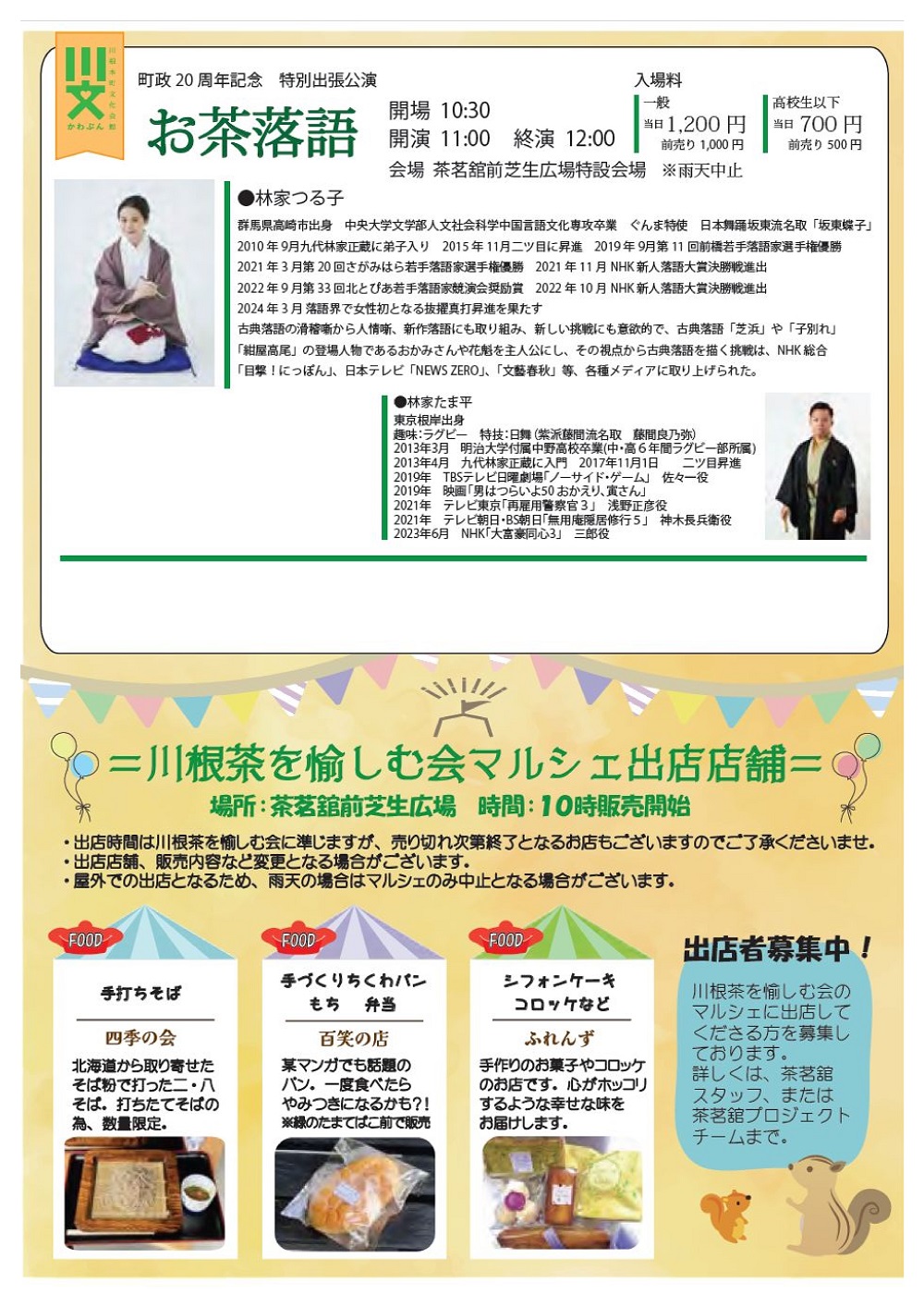 屋外では、マルシェやお茶落語の公演もあり一日中楽しめます。