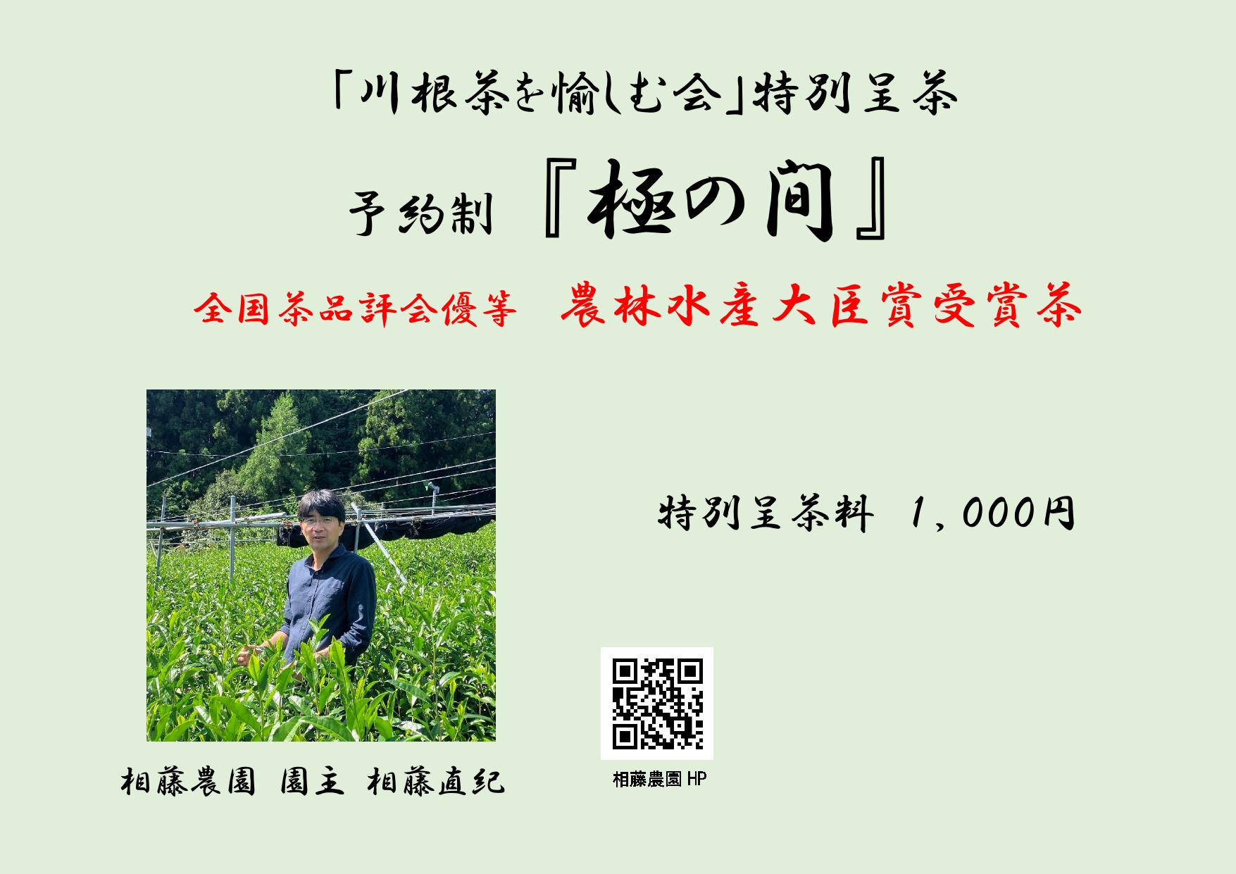今年の日本一、「相藤農園」の農林水産大臣賞受賞茶 呈茶の受付をします。